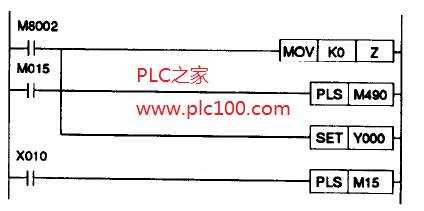 程序初始扫描期间特殊继电器M8002接通一次。把它记成在通电时产生的一个脉冲比较方便些。这样就意味着与M8002输入相联的任何指令在加电期间只执行一次。这用于一个初始化过程是理想的。这个过程用来复位数据寄存器,设置器件开通或关断,同时也复位计数器。
